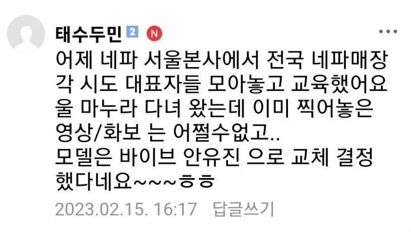 어쩔수 없고 모델은 아이브 안유진으로 교체결정났다고.