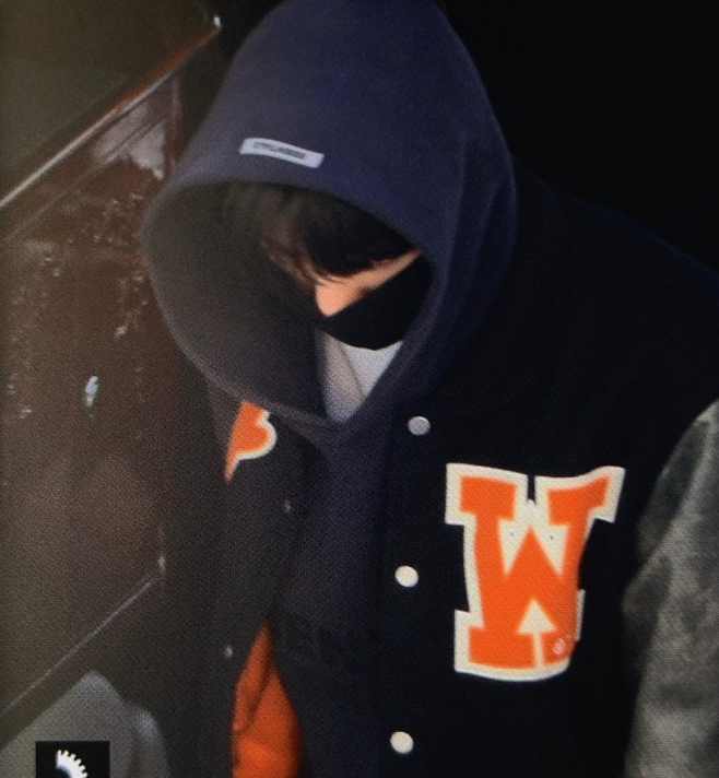 한유진은 바시티 야구 잠바 자켓을 입었고