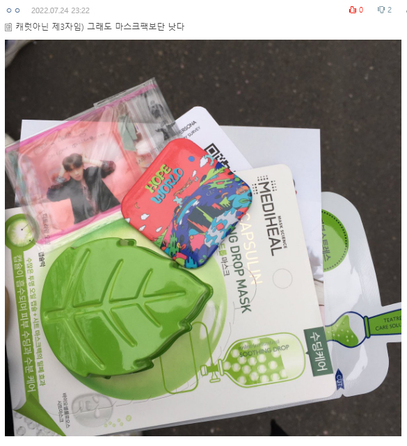 그래도 마스크팩 보단 낫다는 제이홉 팬 아미분도 있네요 ㅋ