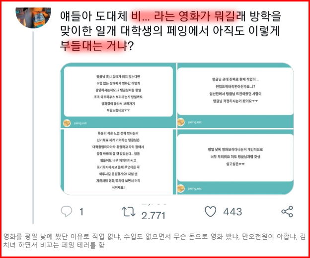 좋아하는 팬이었는데.영화 별로라는 말 했다가 불링당하는중.
