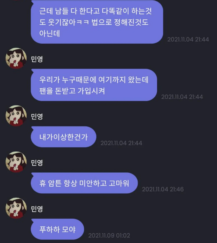 민영이 매우 놀라고 화났나봐요..ㅎㅎ