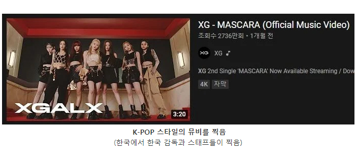 심지어 "XG"라는 그룹은. 진짜 케이팝인척 하고있죠?