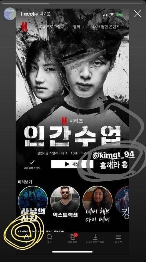 김지인이 넷플 스샷 올리는데 나재민 계정 쓴거..