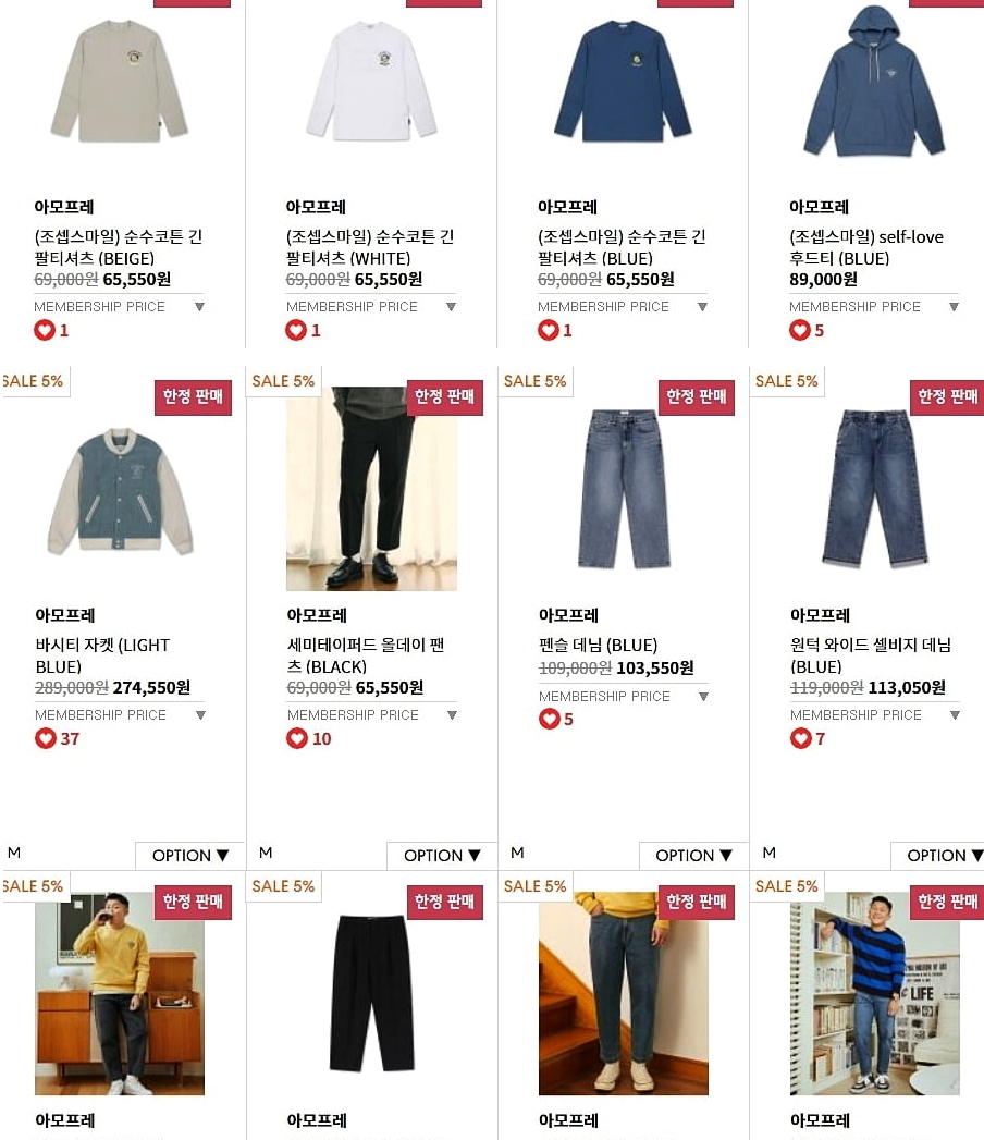현재 아모프레 무신사 스토어 들어가보니 조셉스마일 등
