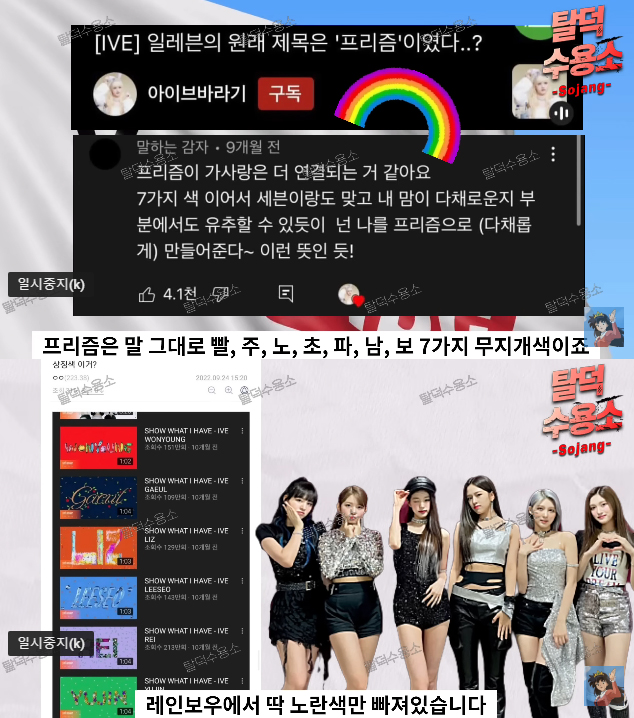 실제로 멤버들 대표 색상이 노랑빼고 빨주초파남보라고.
