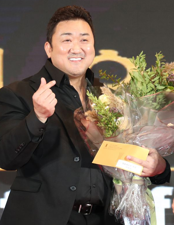 감사드린다'라는 수상소감 발언을 한 마동석.